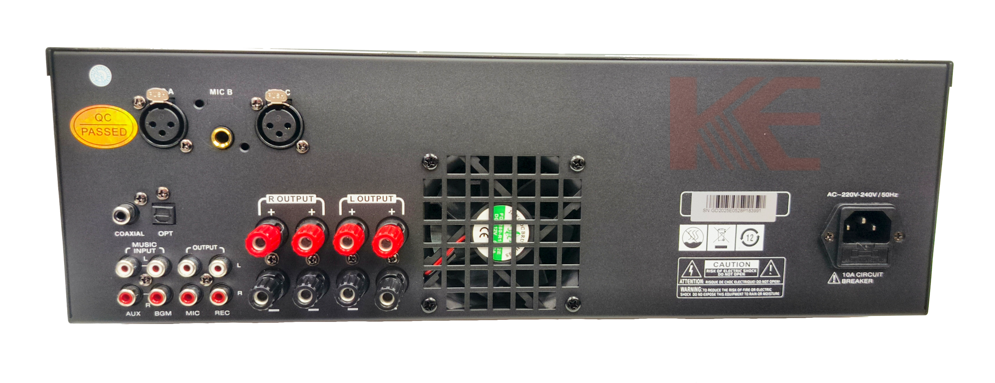 - Three mic inputs located on the front panel with reverberation effect, depth and delay functions, karaoke effect that always meet the needs of KTVs
