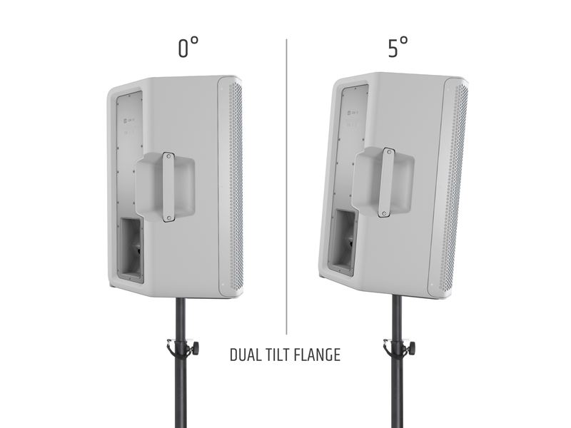 Thanks to its shock-resistant front grille and ideal 55° tilt angle make the ICOA 12 outstanding as a floor monitor. Placed vertically, the 36 mm dual tilt stand attachment offers the choice of a 0° or 5° tilt angle for optimally adapting the system to the local acoustic environment. Extensive and smart accessories for installation and transport are optionally available. Four aluminium handles with an ergonomic rubber surface provide optimal grip when carrying the speaker.