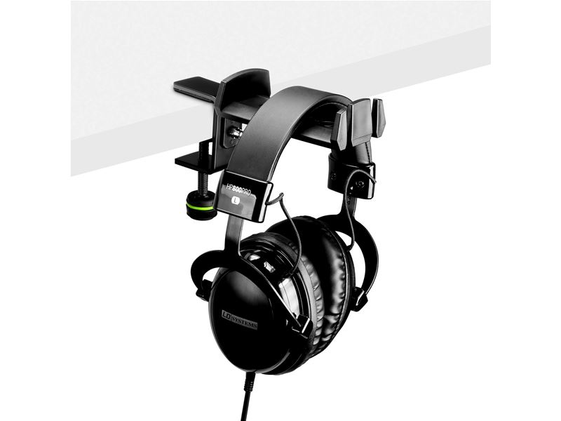 This hanger clamps to any desk with 5 to 45 mm thickness to put your headphones in easy reach. It features two convenient slots to keep your headphone cables neat and tidy, and the plastic set screw tip protects your desk's finish.