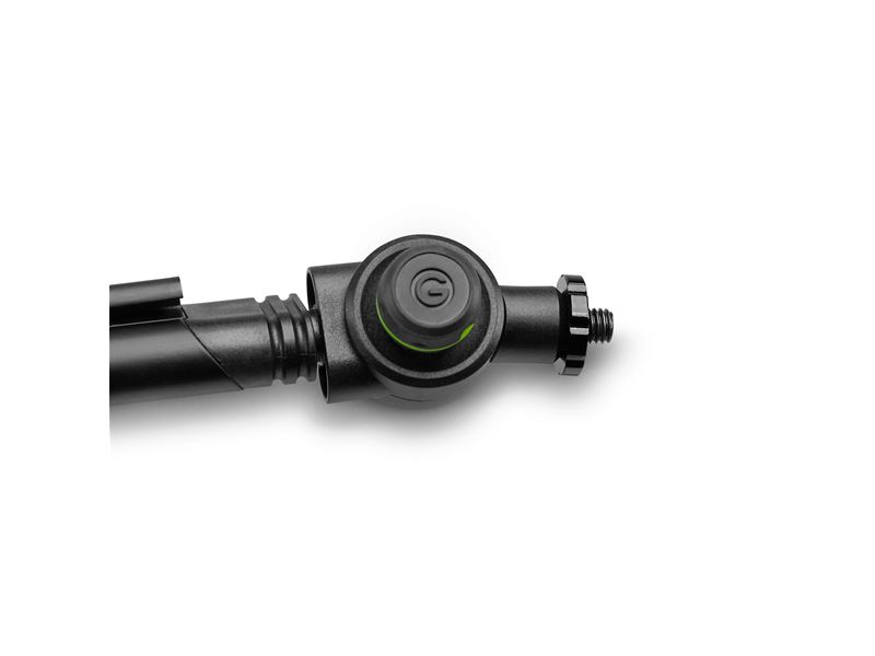 With its three joints the desk-mounted microphone boom arm can be placed in pretty much any position you want. Another special feature that Gravity® developed for the microphone holder mechanism allows you to pull out the entire microphone holder with one hand and rotate it in 90° increments, even after the microphone has been screwed in place with the microphone or shock mount. The holder then automatically snaps back into place. Why is that so special?